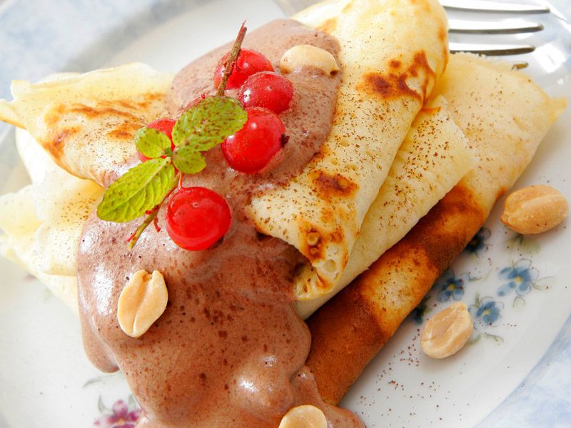 - Crepas con salsa de chocolate y cacahuate