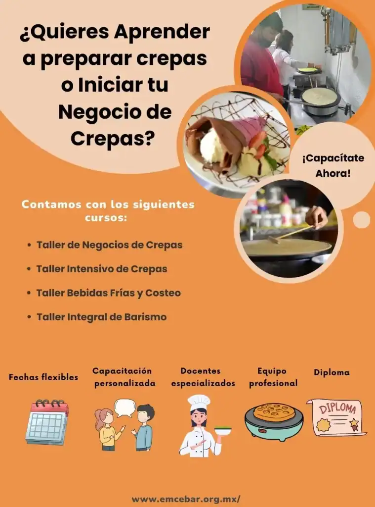 Si después de conocer qué es una crepa te interesa aprender a prepararlas correctamente, la capacitación es el siguiente paso. Iniciar un negocio de crepas sin conocimientos puede generar errores costosos.